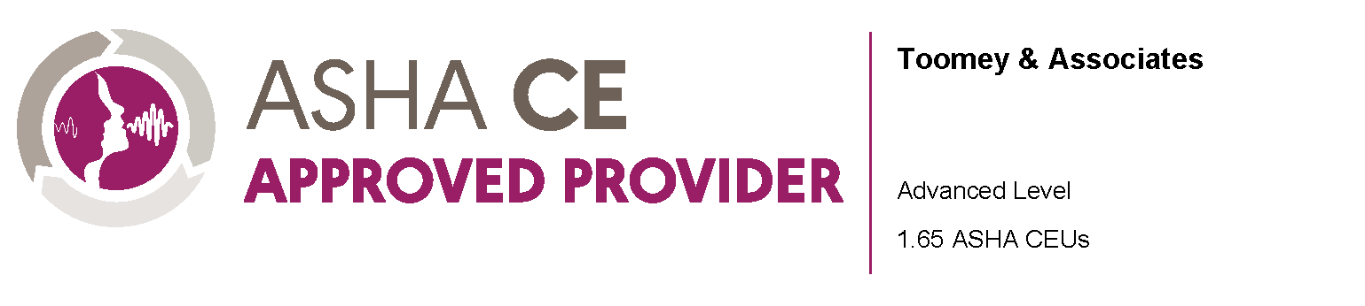 Toomey & Associates is an AOTA Approved Provider of professional development. Course approval ID #11556. This live activity is offered at 1.65 CEUs, advanced level, Evaluation, Intervention and Activity and Occupational Demands. The assignment of AOTA CEUs does not imply endorsement of specific course content, products, or clinical procedures by AOTA.